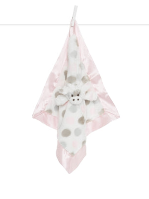 Crafted from ultra-soft Luxe faux fur, this lovey features a silky satin border that adds elegance to its cozy design. The cheerful multi-colored dot pattern pairs beautifully with the embroidered giraffe face, making it as delightful to look at as it is to hold.
